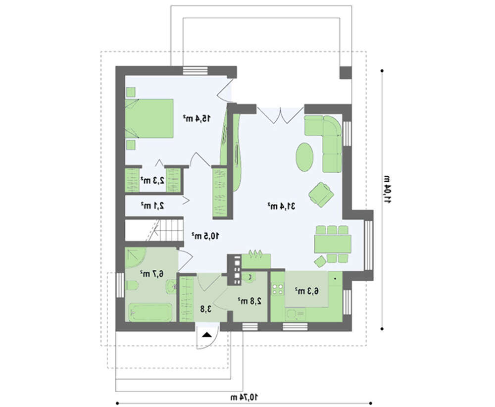 проект в зеркальном отображении позволит органично вписать дом в окружающий ландшафт.
