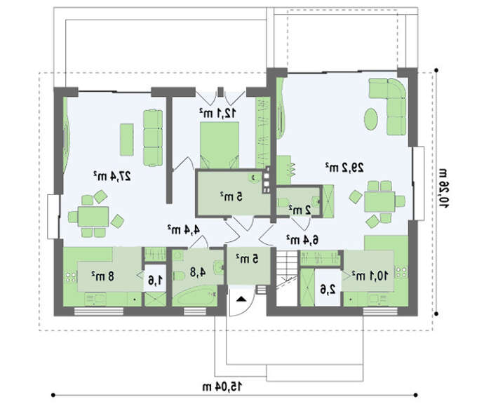проект в зеркальном отображении позволит органично вписать дом в окружающий ландшафт.
