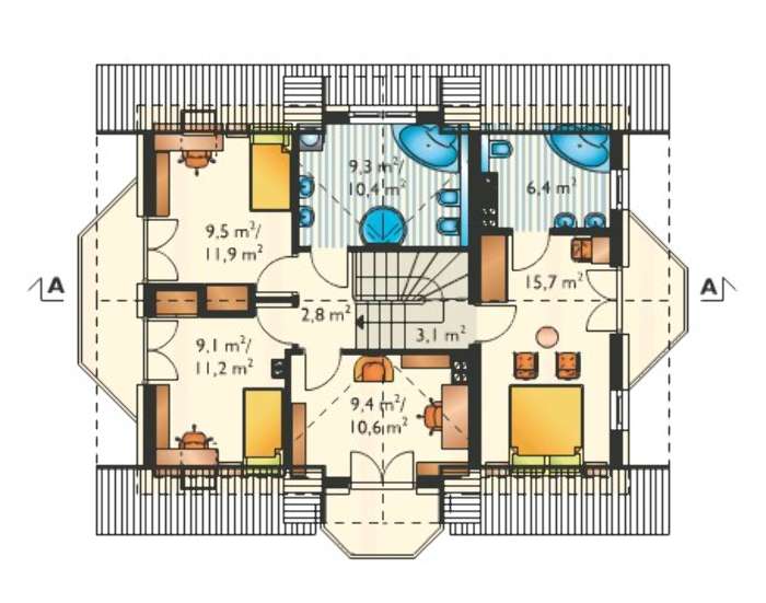 Полноценно отдохнуть и набраться сил помогут четыре спальни второго этажа, наличие балкончиков делает их особенно привлекательными.