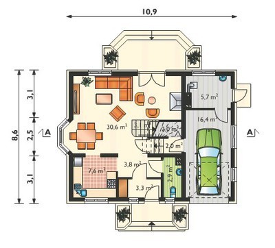 Добавочные преимущества получают жильцы от потрясающего по красоте эркера, наполняющего помещение светом и растительным очарованием. Удобно, когда гараж расположен рядом, и для его посещения нет необходимости покидать здание. Особенно приятно, что тут же размещенная автомастерская позволяет реализовывать работы по ремонту автомобиля в комфортных условиях.