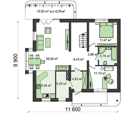 Проект содержит три раздела – Архитектурный, Конструктивный и Инженерный: водоснабжение, отопление, вентиляция, канализация, электроснабжение (приобретается за дополнительную плату) + Пояснительная записка.