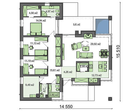 Роскошный одноэтажный жилой дом с двумя верандами 4M759