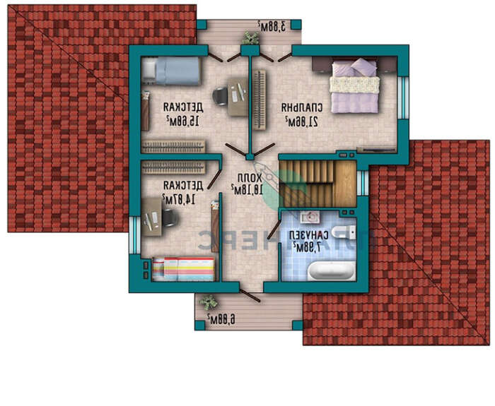 • 4M1431 Схема двухэтажного коттеджа площадью 155 кв. м со стильным входным порталом и ажурным балконом