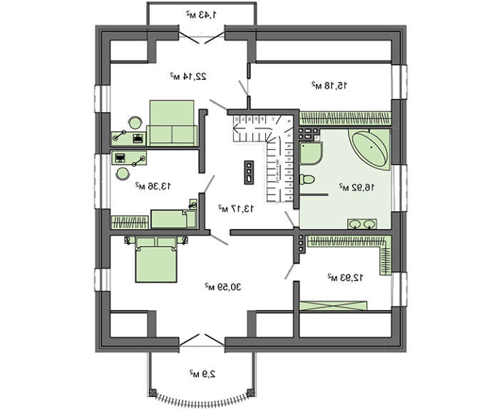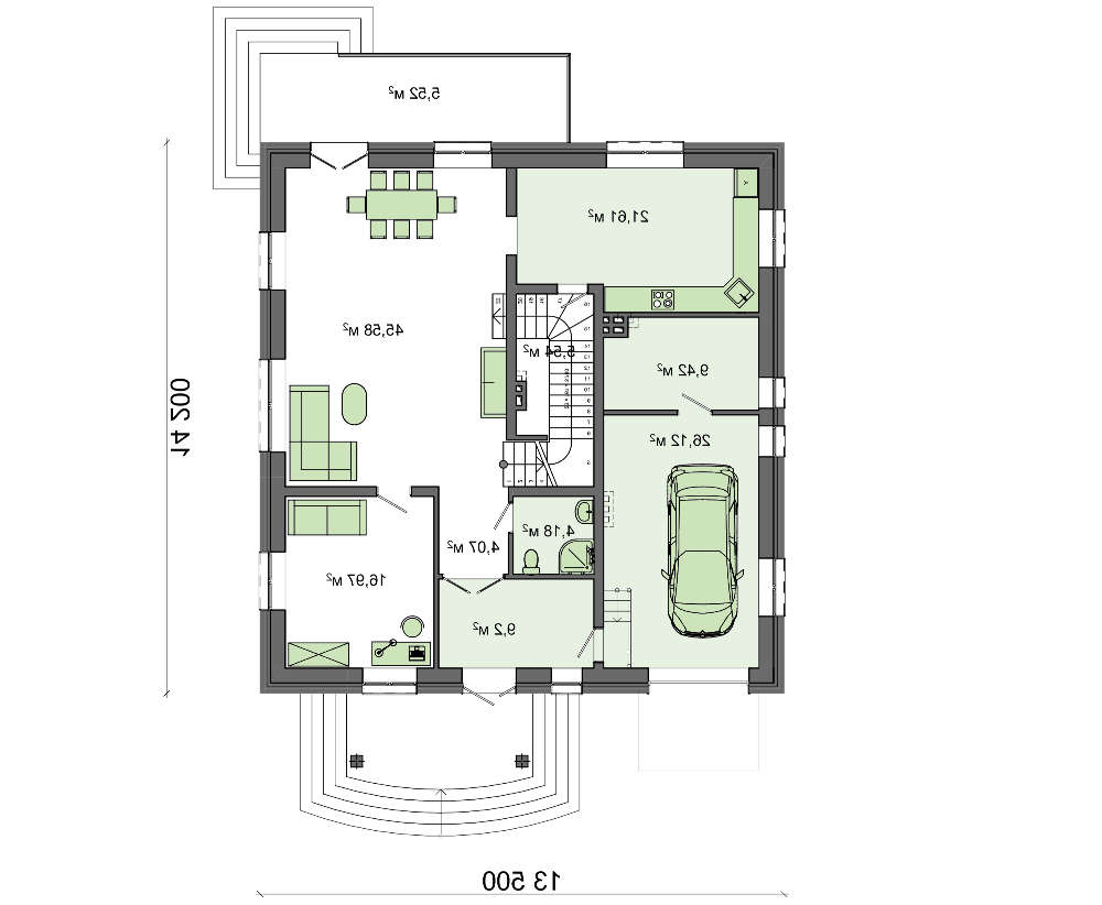 проект в зеркальном отображении позволит органично вписать дом в окружающий ландшафт.