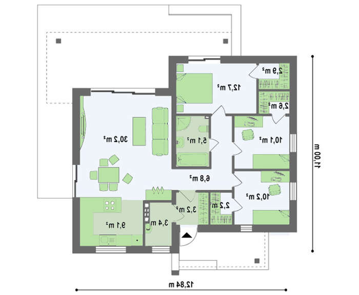 проект в зеркальном отображении позволит органично вписать дом в окружающий ландшафт.