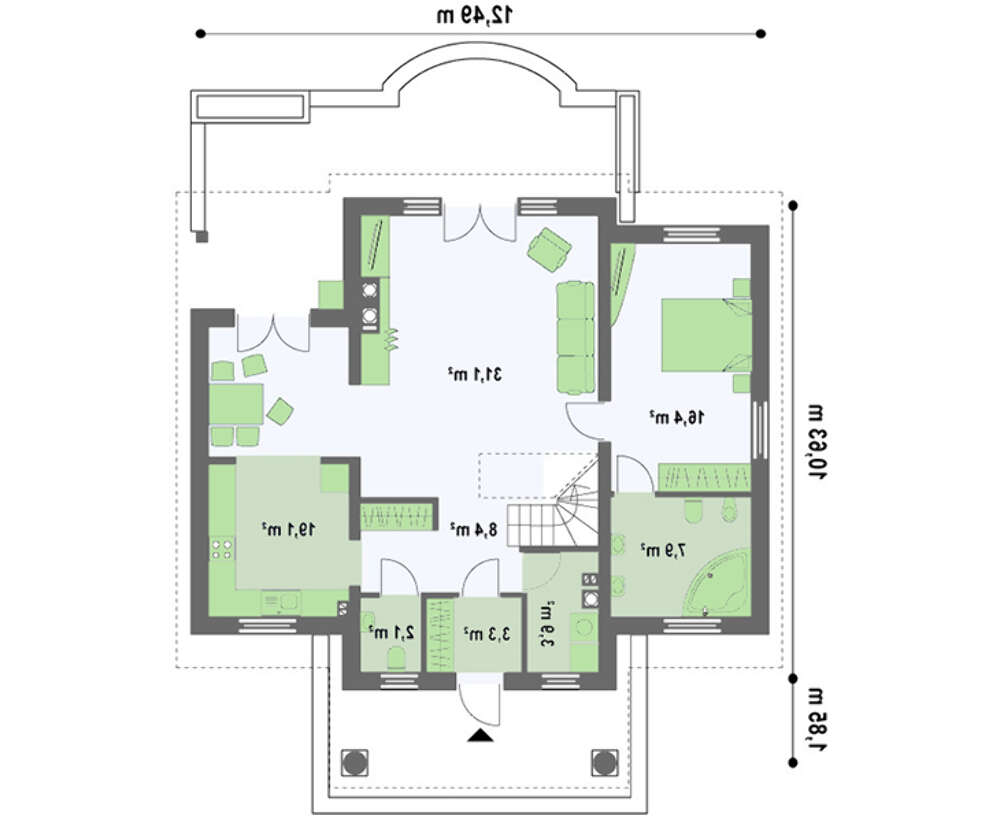 проект в зеркальном отображении позволит органично вписать дом в окружающий ландшафт.
