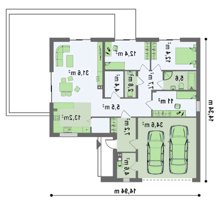 • 4M182a Стильный проект одноэтажного коттеджа с большим гаражом для 2 авто