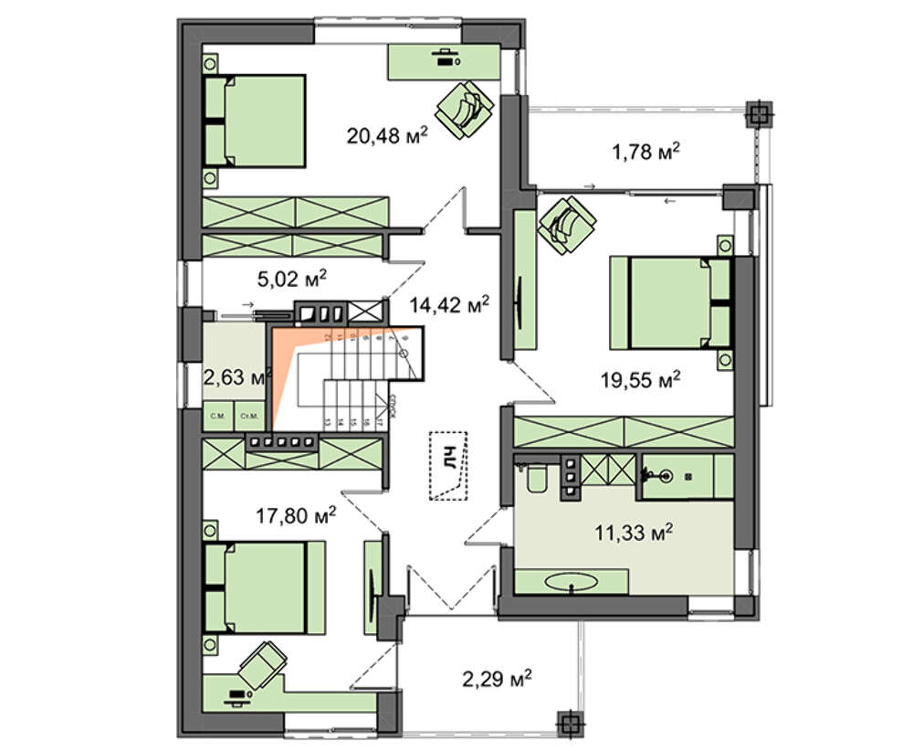 • 4M1480 Строгий двухэтажный дом в европейском стиле