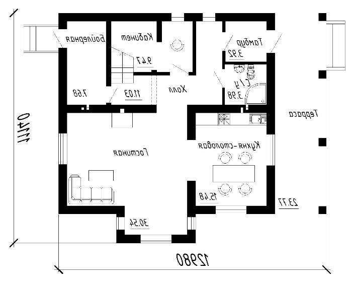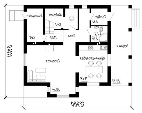 проект в зеркальном отображении позволит органично вписать дом в окружающий ландшафт.