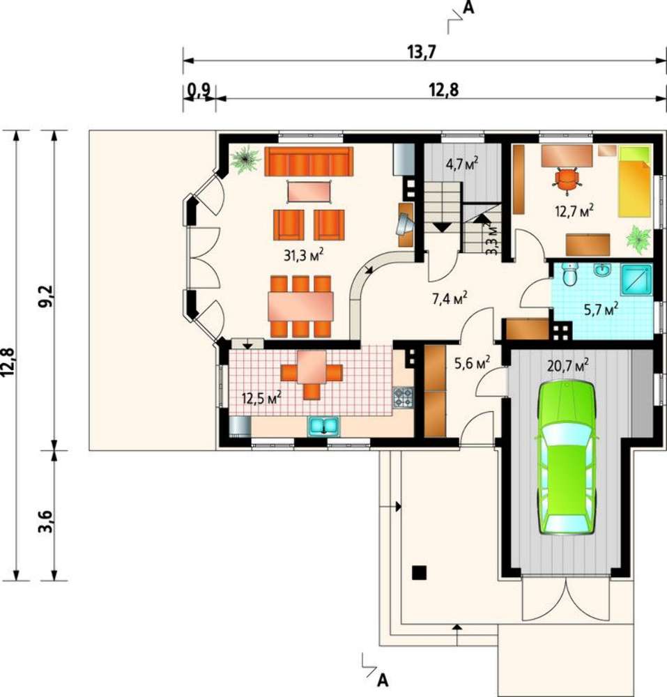 Уютный дом с пятью спальнями и гаражом для автомобиля