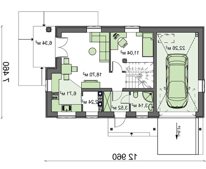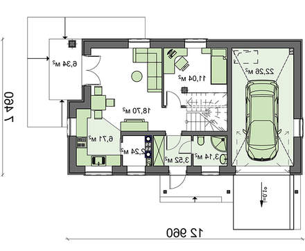 • 4M480G Вариант популярного домика для отдыха 4M480 с пристроенным гаражом