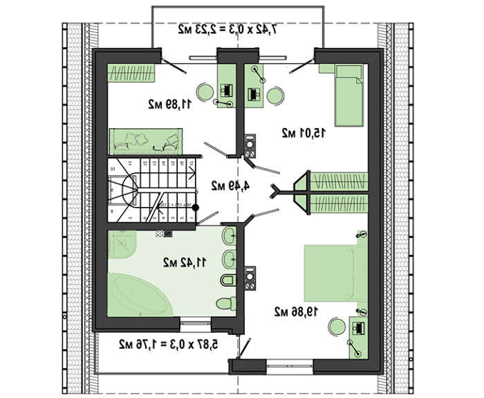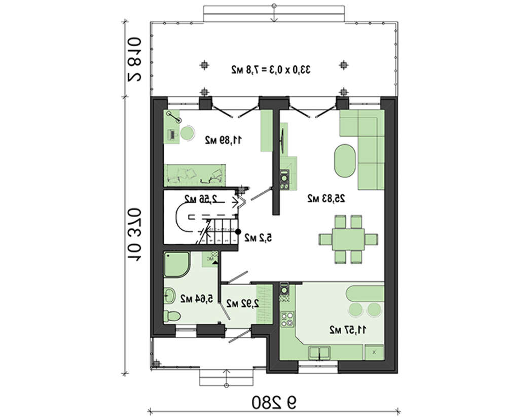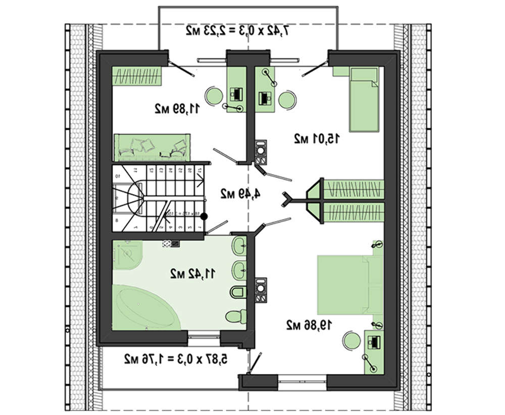 Проект содержит три раздела – АрхитектурныйКонструктивный и Инженерный: водоснабжение, отопление, вентиляция, канализация, электроснабжение (приобретается за дополнительную плату) + Пояснительная записка.