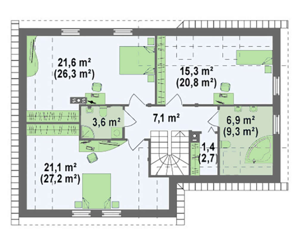 Проект содержит три раздела – АрхитектурныйКонструктивный и Инженерный: водоснабжение, отопление, вентиляция, канализация, электроснабжение (приобретается за дополнительную плату) + Пояснительная записка.