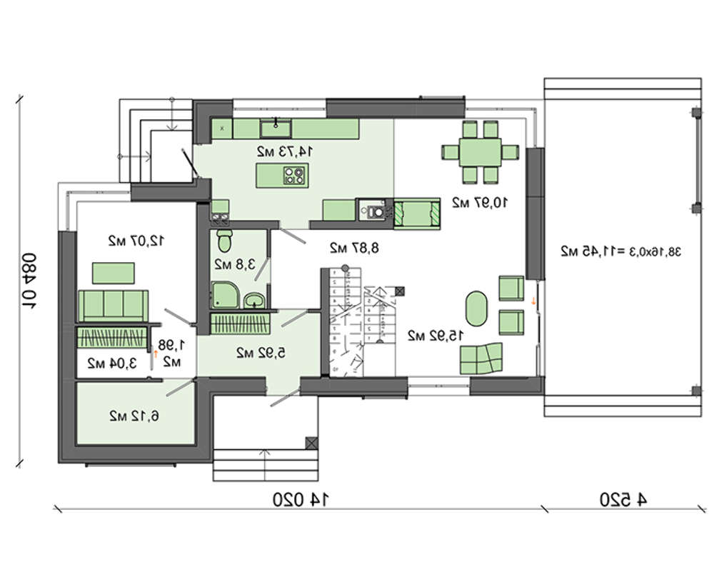 • 4M561 Загородный коттедж в стиле минимализма с декором из дерева и ракушника общей площадью 168 кв. м, жилой 69 кв. м
