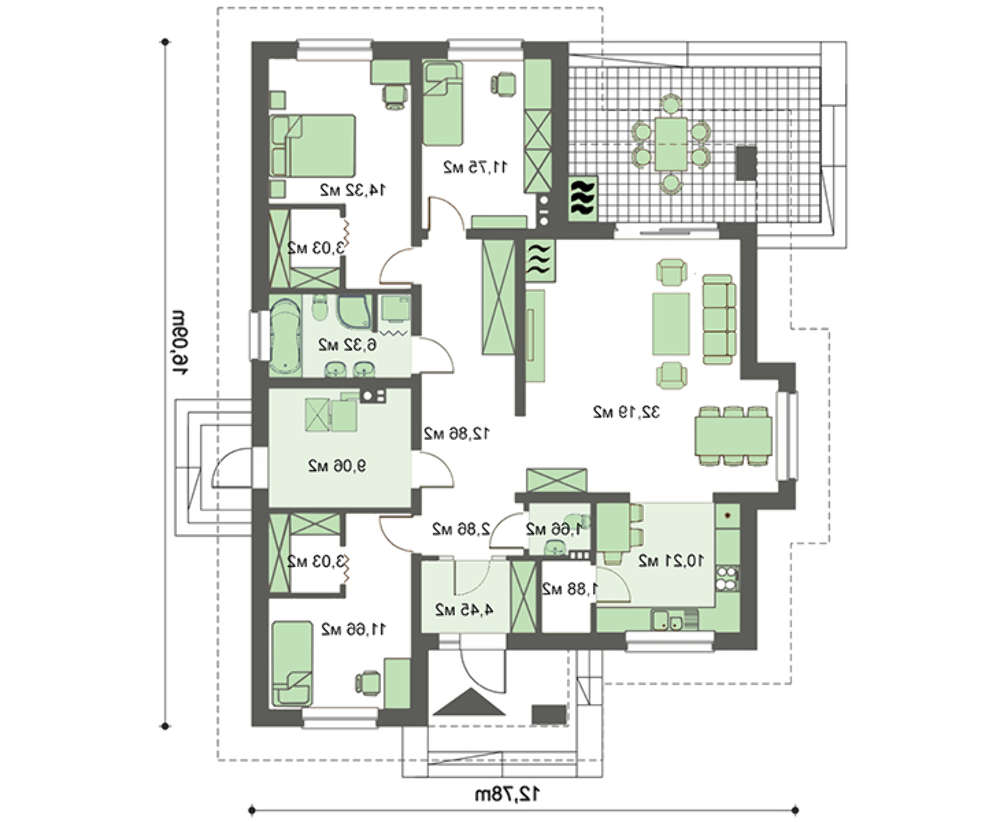 проект в зеркальном отображении позволит органично вписать дом в окружающий ландшафт.