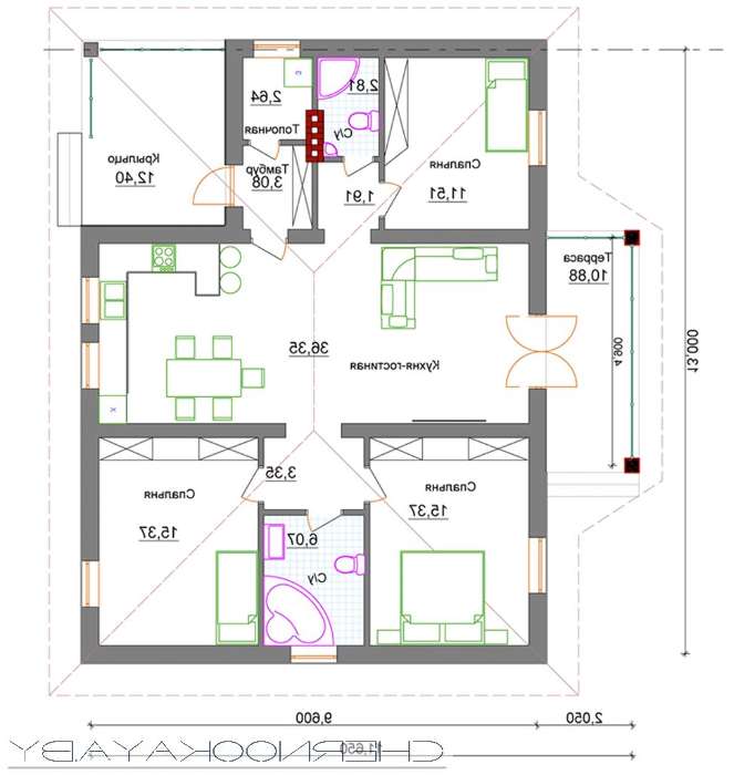 • 4M2322a Загородный одноэтажный дом с тремя спальнями