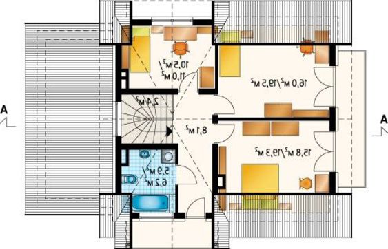 Для сна и отдыха выделено четыре комнаты. Помещение на нижнем этаже имеет преимущество в изолированности. Комнаты второго уровня выделены большими площадями, наличие балкона наиболее востребовано среди мечтателей и романтиков.