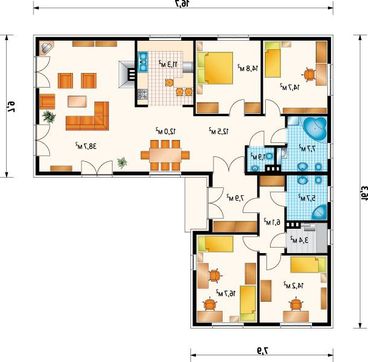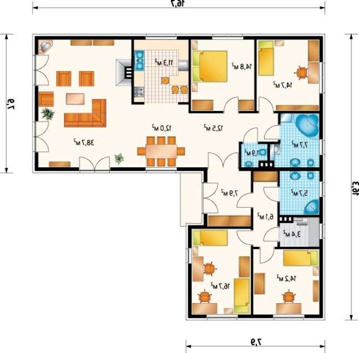 • 4M3699a Загородный особняк с площадью 170 m² в форме буквы Г